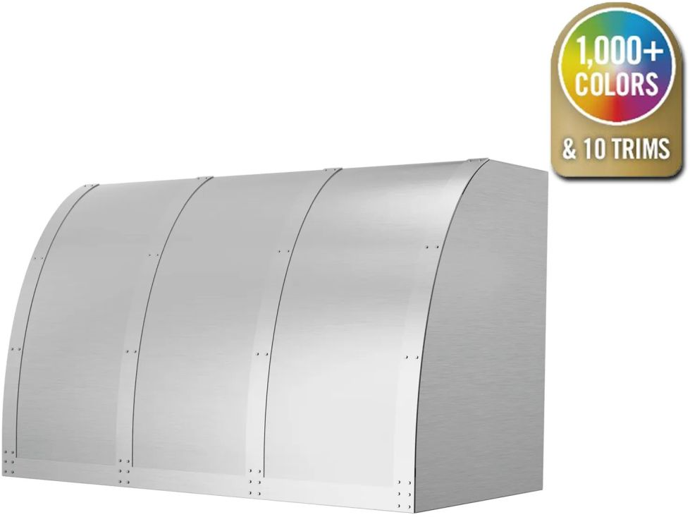 Metals & Strapping: Change your hood material from stainless steel to 14 different custom metals options including brass and copper. Plus, enhance your ventilation hood design by adding custom strapping and rivets to compliment other finishes in your kitchen.