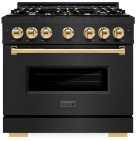 Luxury isn’t meant to be desired - it’s meant to be attainable. The ZLINE Autograph Edition 36 in. 5.2 cu. ft. Classic Gas Range with 6 Burner Cooktop and Convection Gas Oven in Black Stainless Steel and Polished Gold Accents (CGRBZ-36-G)Read More